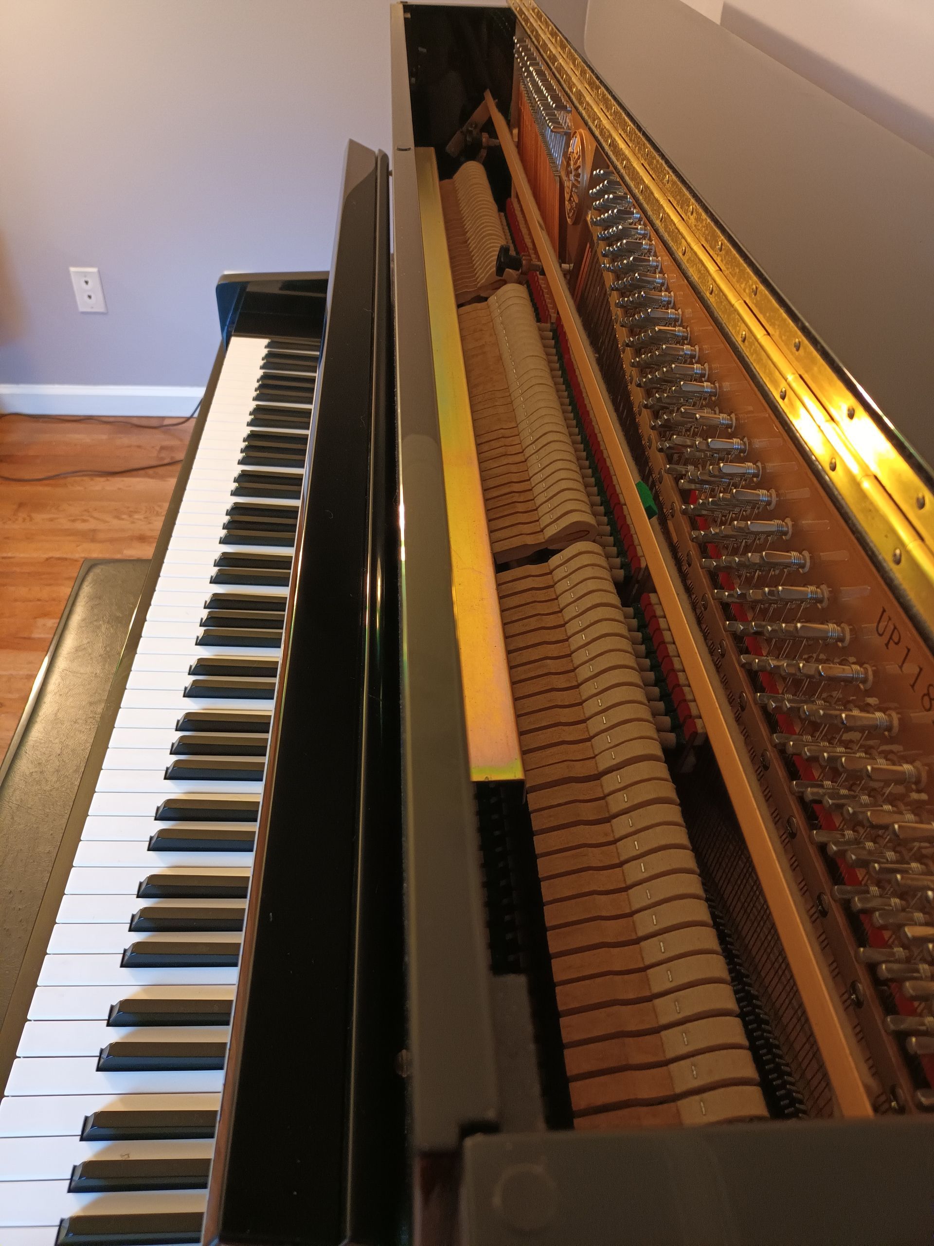 Description: Chickering made some finer small uprights that have continued to be useful entry-level instruments producing a good even tone and mechanical integrity. Check this one out in East Nashville for your playing demo.