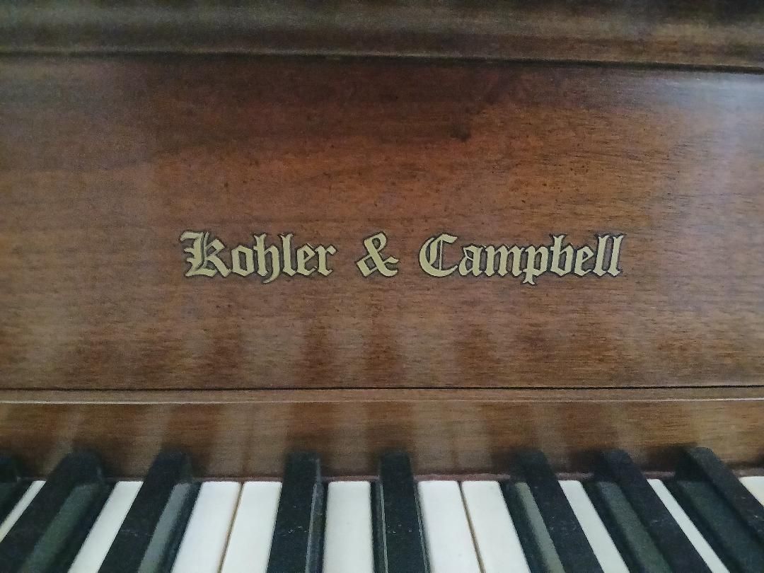 Description: The Kohler and Campbell label is one of the finer small pianos made. The name still carries on for over a century. Always an impressive instrument. This one has been well maintained during it's history and a strong sounding instrument that needs a new home. Great for the home studio or advancing student. A great choice with many years of service still at hand. Come play it in East Nashville. Moving service available.