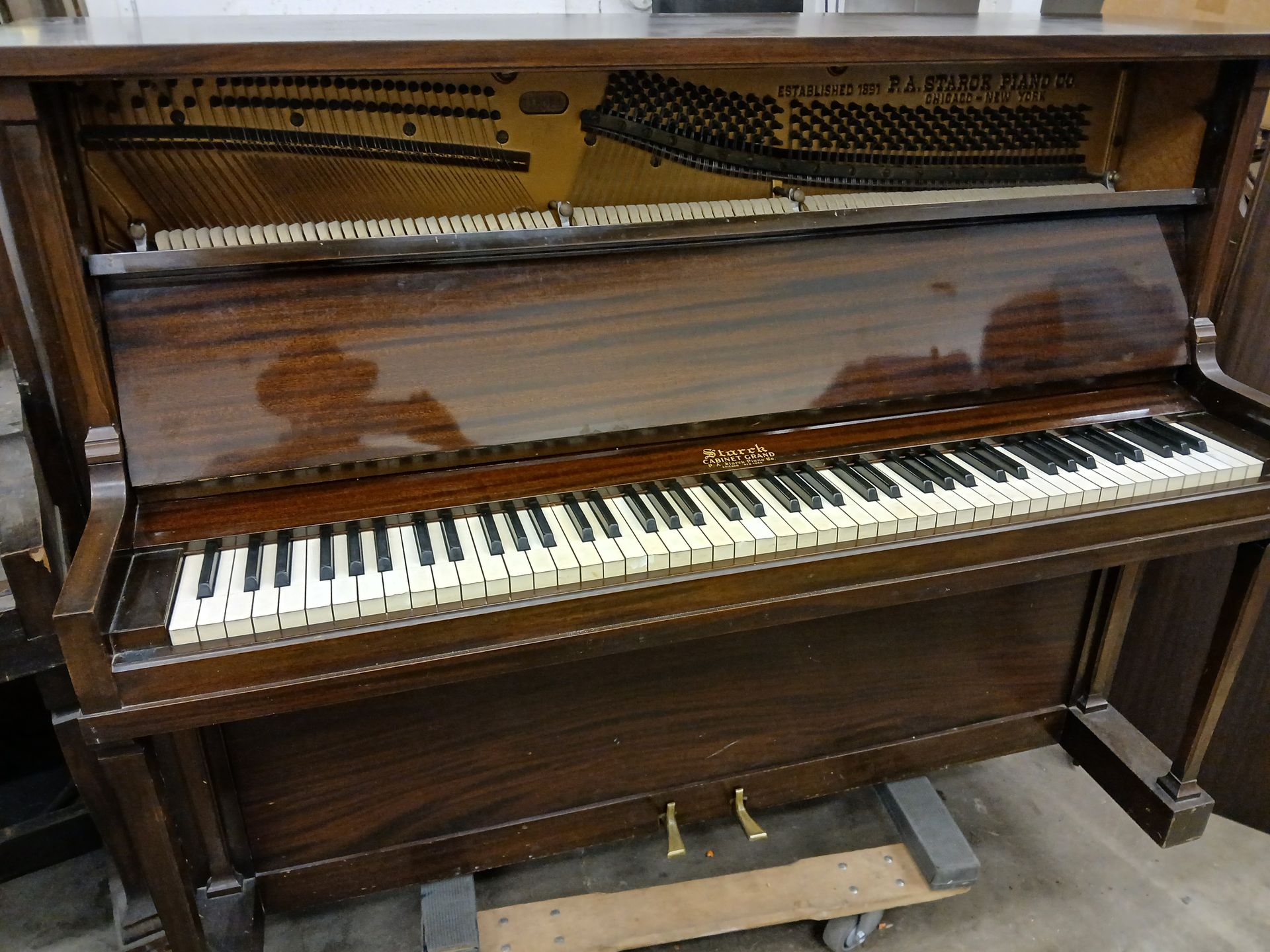 Description: The Starck line of pianos in it's earliest years made some high achieving player painos and other uprights. Circa 1960 and still singing sweet. The well balanced keyboard stands above the rest you will play. Well tuned for a working muscian and ready for your demo. Come play it in East Nashville. Call 615-424-0158 for your playing time. Delivery is available.